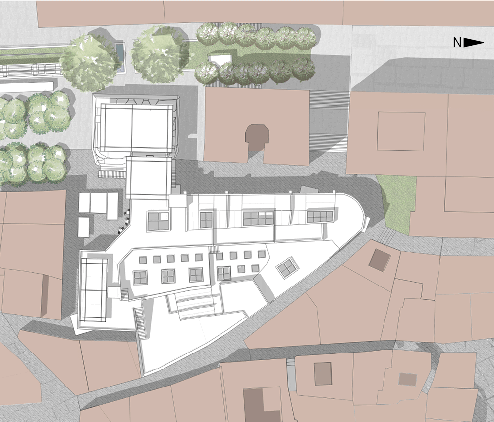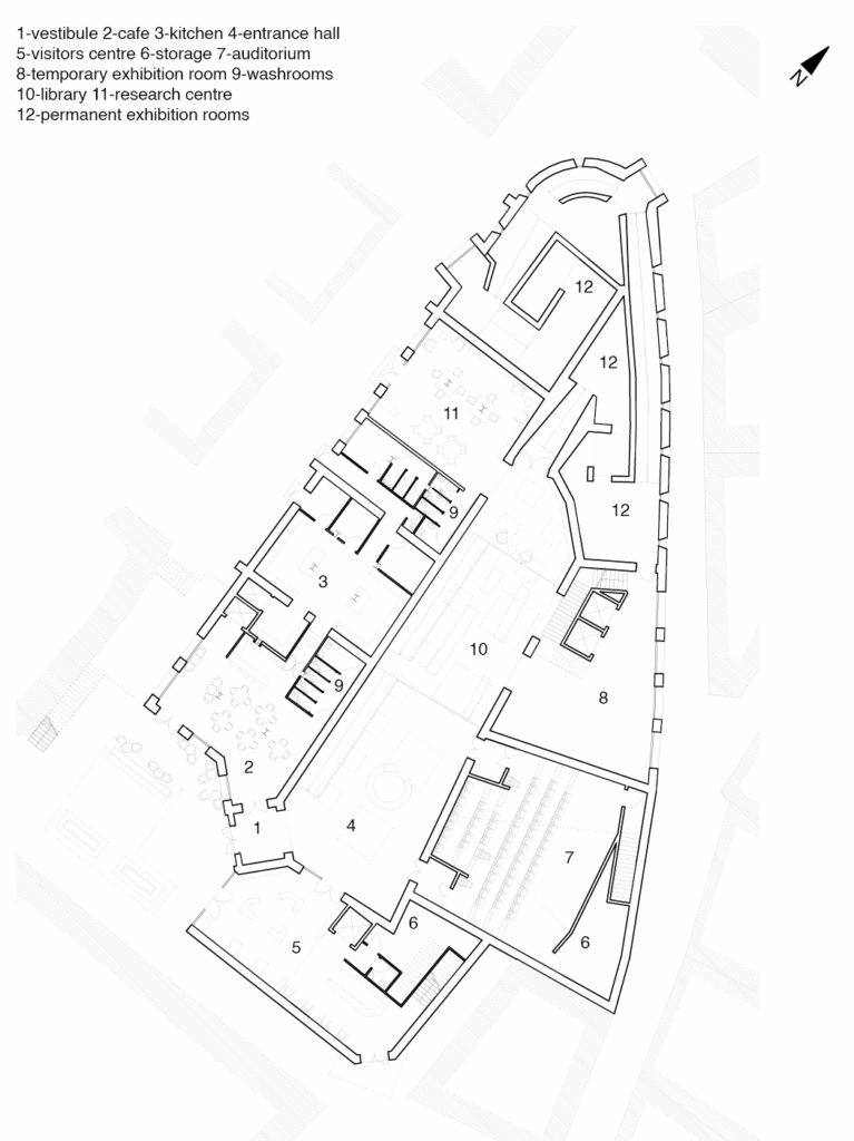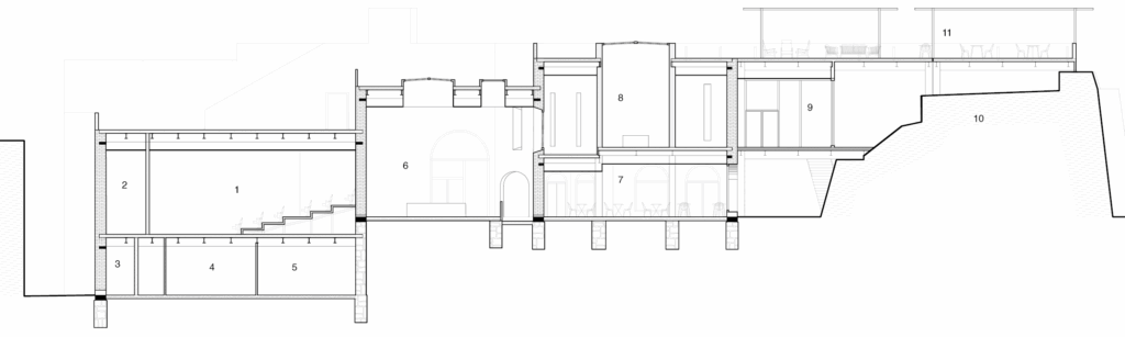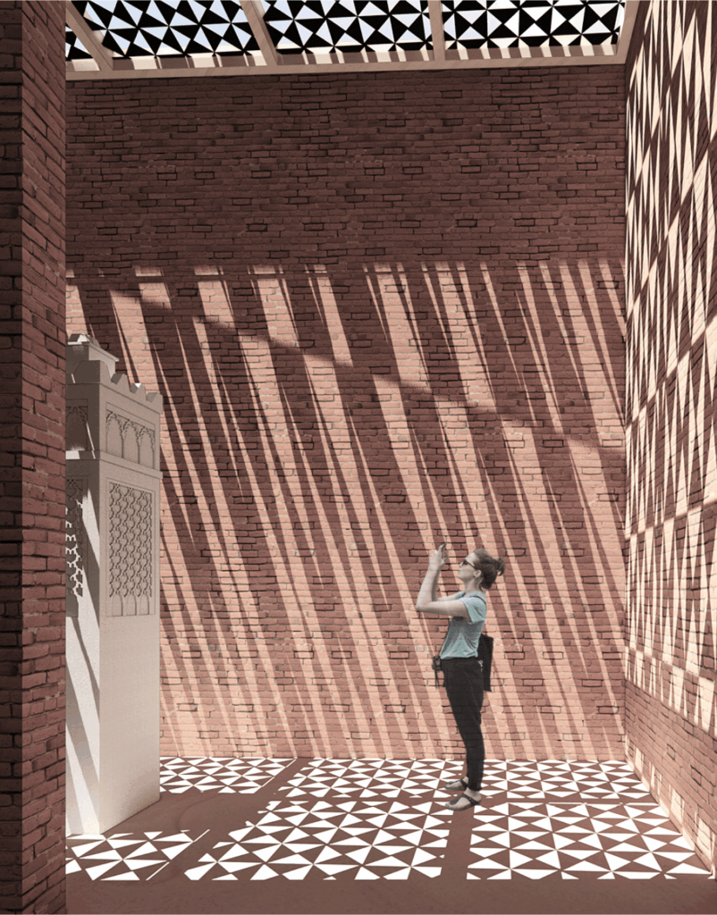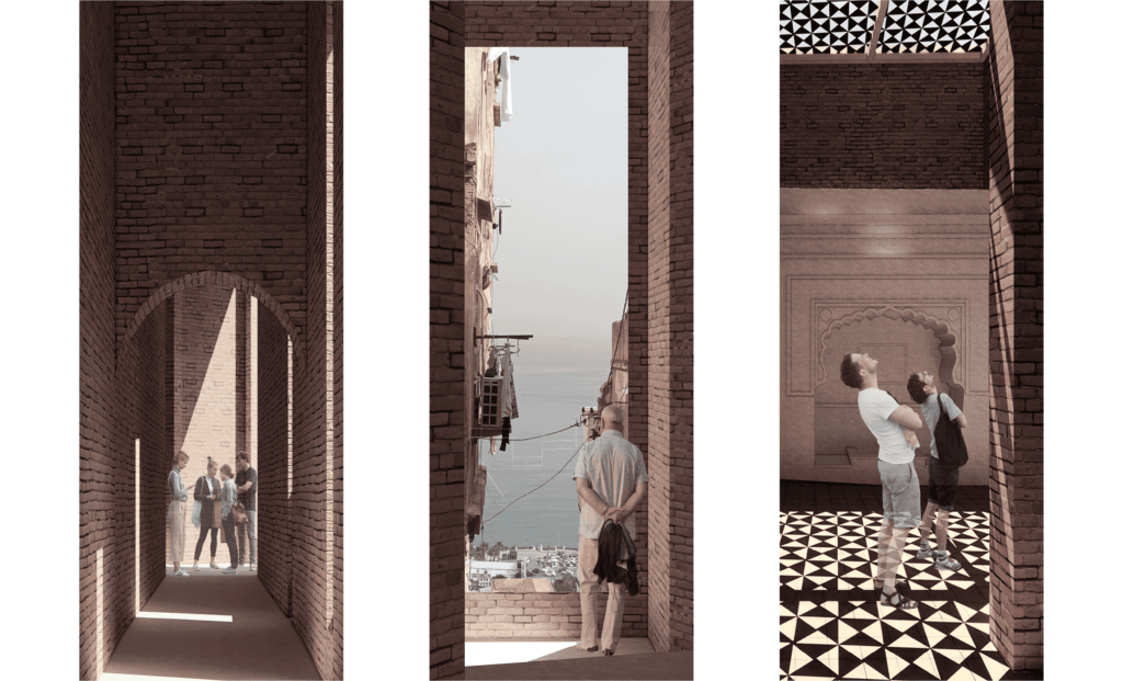 The project aims to consolidate the urban fabric by building the void and marking the entry to the medina while reminding and educating people on the place’s history. The architecture and layout of the building are a reinterpretation of elements from the typical Casbah patio house and military architecture (centered layout, patio, arrow slits, chemin de- ronde, nude brick appearance…). It is also a synthesis of the urban experience of the Casbah, a slopped way with framed views and an alternation of light and shadows till it reaches a culminating point with a view on the city and the sea.