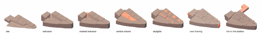 Spatial sequence from the entrance to the top of the bastion, through the exhibition rooms an emulation of the Casbah’s urban environment