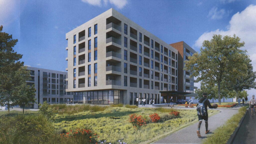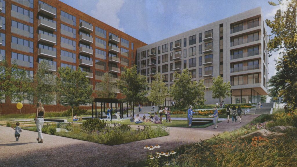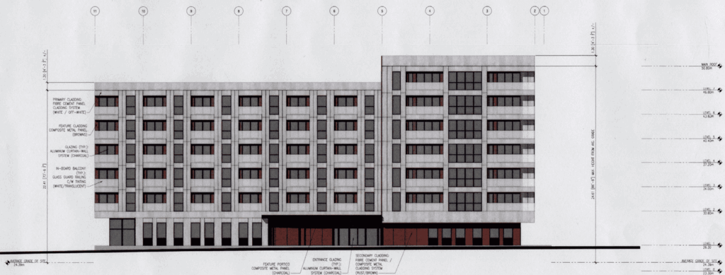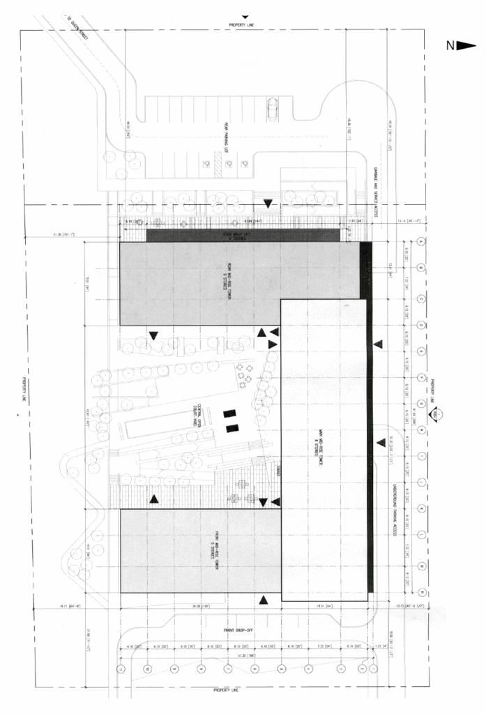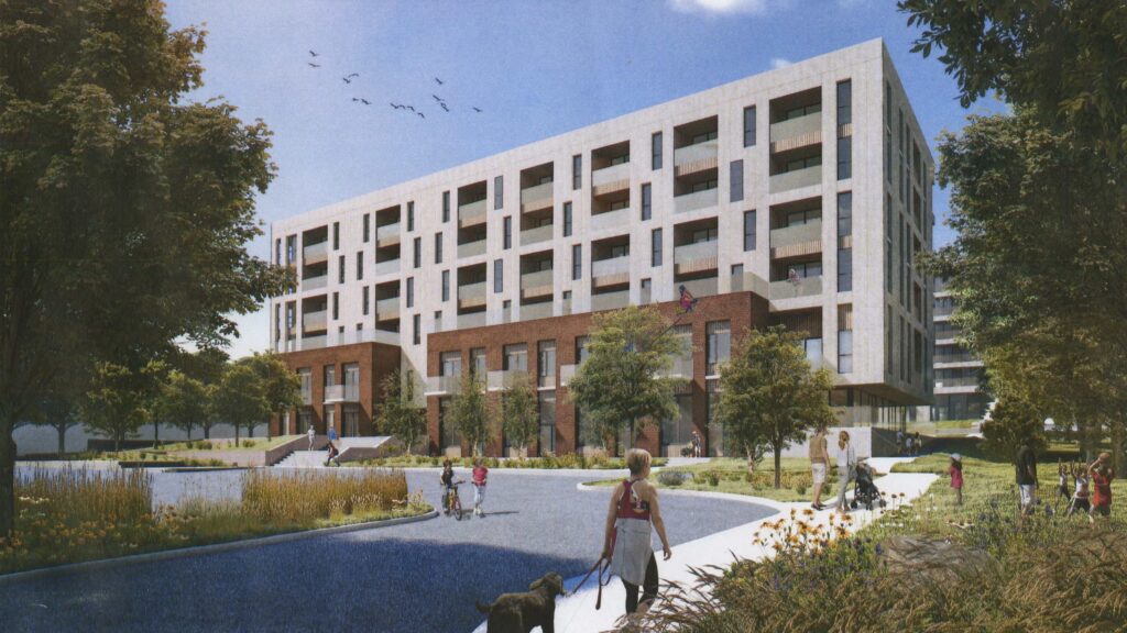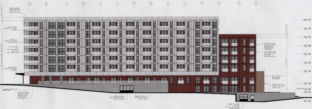 The residence counts 266 units mostly destined for students with some walk-up family units that fit the private character of the back of the building.